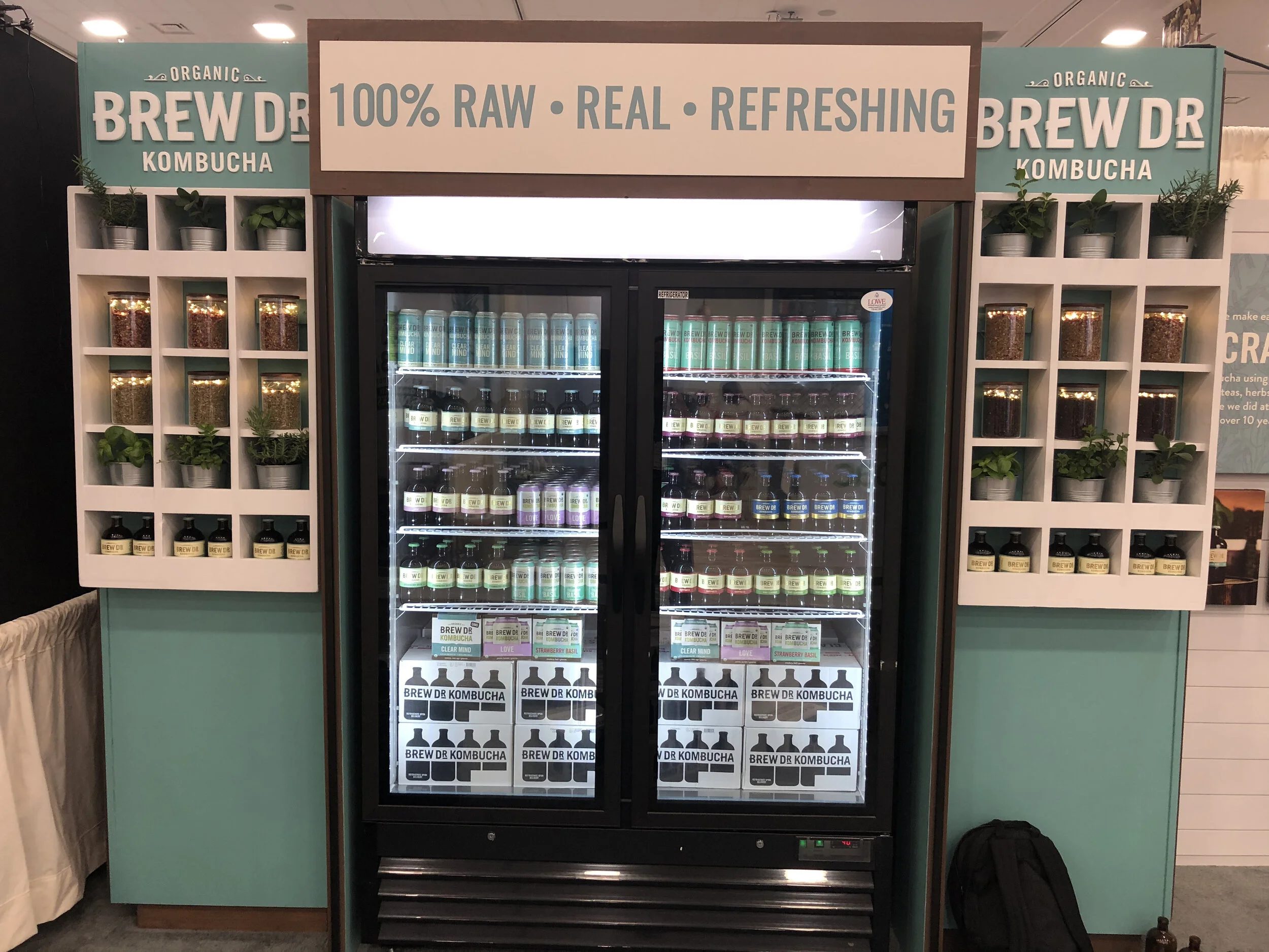 Brew Dr. Kombucha was looking for an updated booth with a fresh new look for their trade show presence beginning with Natural Foods Expo West 2019. The design needed to incorporate more storage, be lighter in weight than last year’s booth, and be modular to accommodate three different booth sizes (10’x30’, 10’x20’ and 10’x10’).